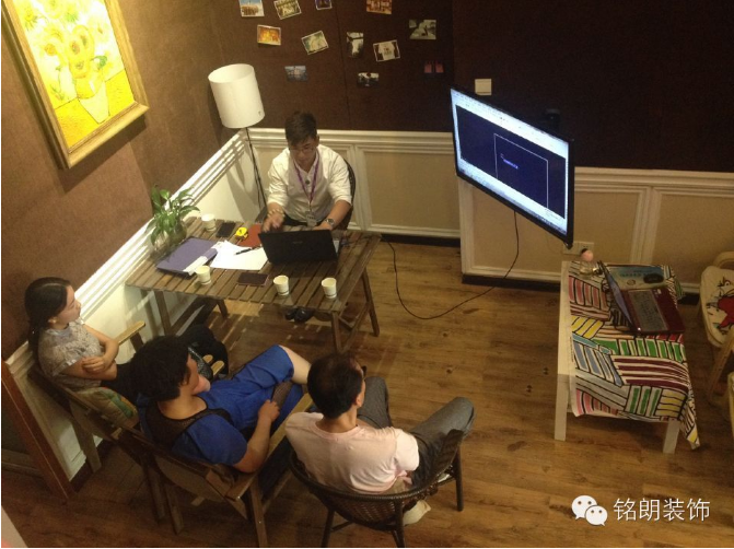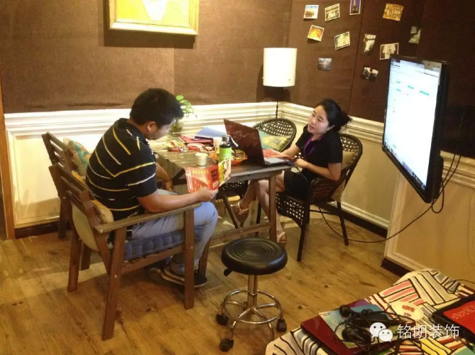 設(shè)計(jì)師們正與客戶溝通設(shè)計(jì)方案,客戶認(rèn)真的聽講自己家的設(shè)計(jì)方案,火爆的畫面只有現(xiàn)場(chǎng)才能感覺到