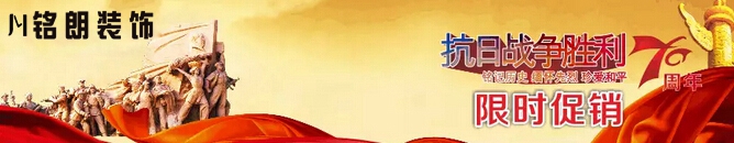 為慶祝中反法西斯戰(zhàn)爭勝利70周年,紀念中歷史偉大的時刻!銘朗裝飾推出大閱兵限時巨惠活動“現(xiàn)場征集金秋惠10套精品樣板房”,
